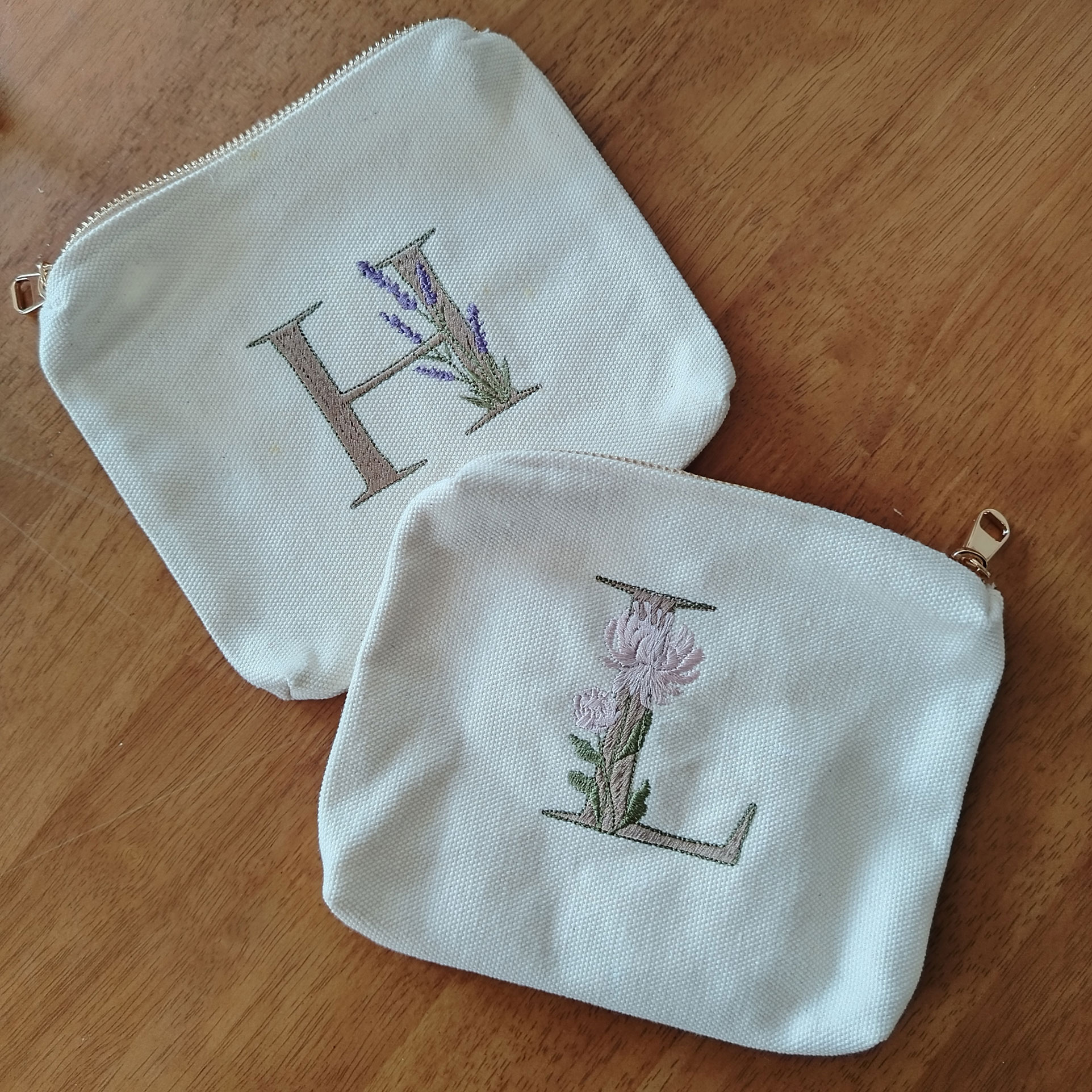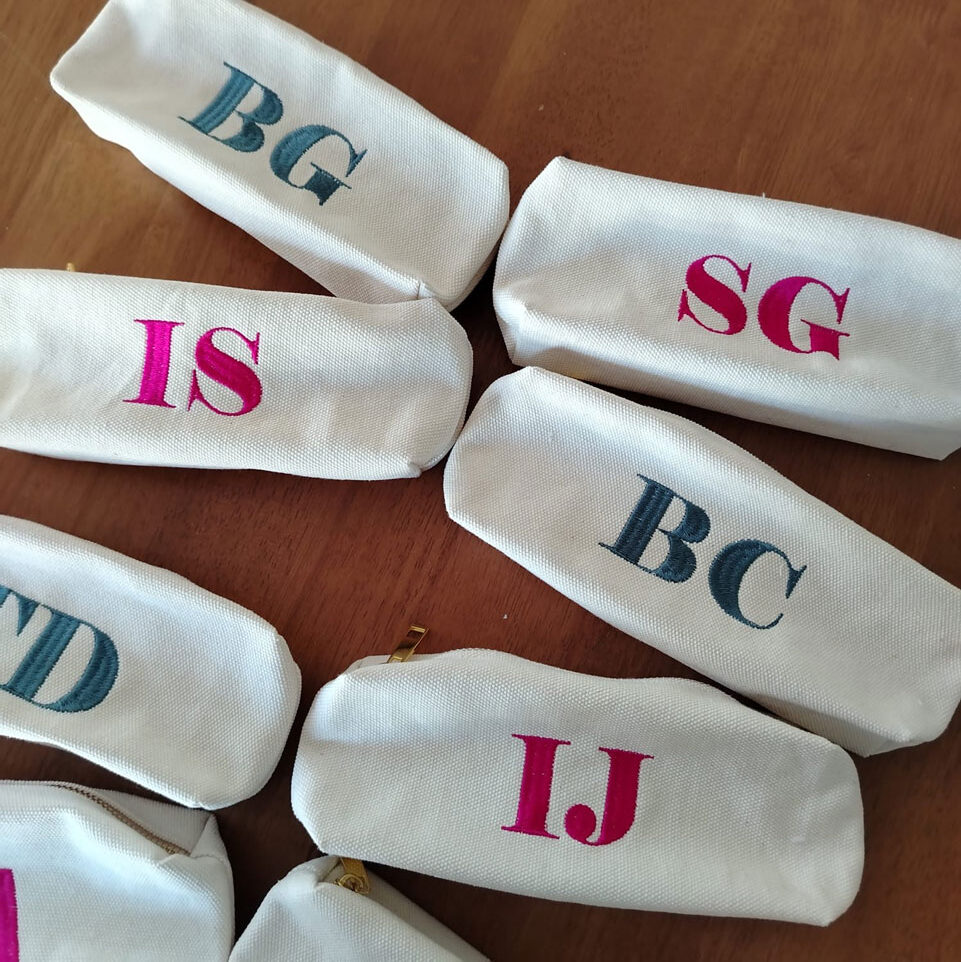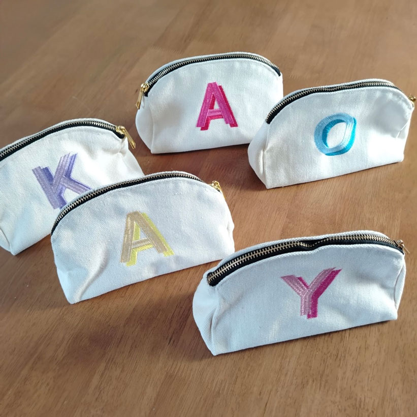 Each pouch includes a single letter monogram of either our premium or classic font.