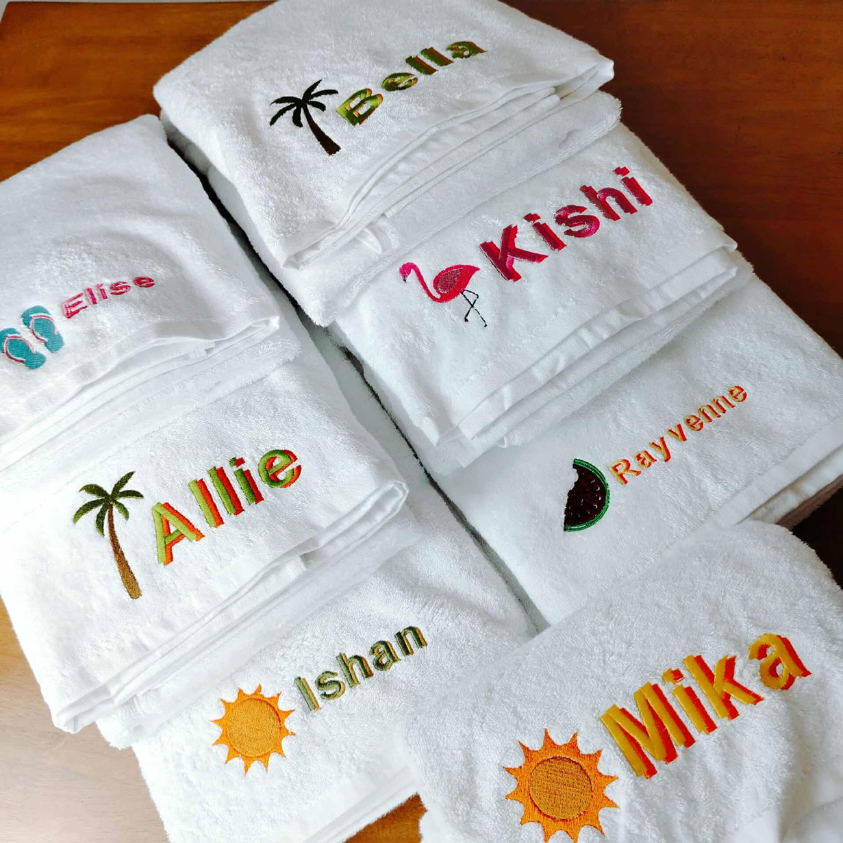Our towel embroidery service is available for client-provided towels, allowing you to personalize your own preferred textures and colors.